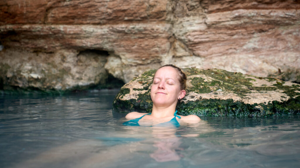 Wir hören das sich süd-westlich von Palermo eine natürliche Quelle mit angenehmer Badetemperatur befinden soll. Direkt fühlen wir uns an unsere Island-Abenteuer zurück erinnert. Natürlich können wir dieses Erlebnis nicht verpassen. Nach einigen abenteuerlichen Straßen mit nicht-trivialen Engstellen (wie machen das eigentliche große Camper hier?), und einem schlammigen Weg durch einen Fluss, den wir nur Barfuß überwinden können, finden wir die Quelle. Es hat sich definitiv gelohnt. Ein heißes Bad mitten in der Natur.