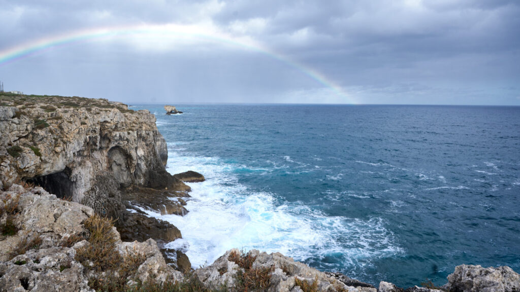 Am ersten Januar stehen wir an der östlichen Küste von Sizilien und werden von einem unübersehbarem Regenbogen im neuen Jahr begrüßt.
