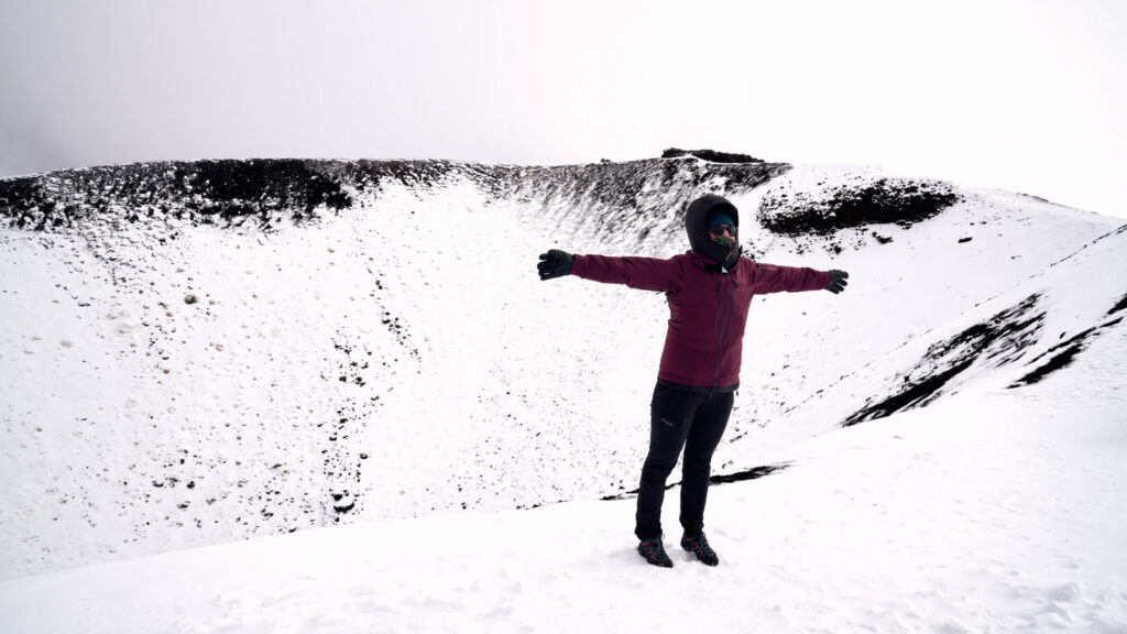 Eigentlich wollten wir daraufhin nur etwas am Vulkan spazieren gehen, aber es kommt anders. Der Fußweg zur oberen Station ist erstaunlich gut begehbar und es stellt sich heraus, das die Strecke gerade einmal vier Kilometer beträgt. Nach ein paar Metern „Erkundungstour“ haben wir bereits ein Drittel hinter uns und der Ehrgeiz setzt ein. Könnten wir das nicht in kürzester Zeit zu Fuß überwinden? Als der Wind etwas nachlässt und uns entgegenkommende Besucher:innen bestätigen das es in der Station oben noch genügend Paninis gibt ist unser Entschluss gefasst.