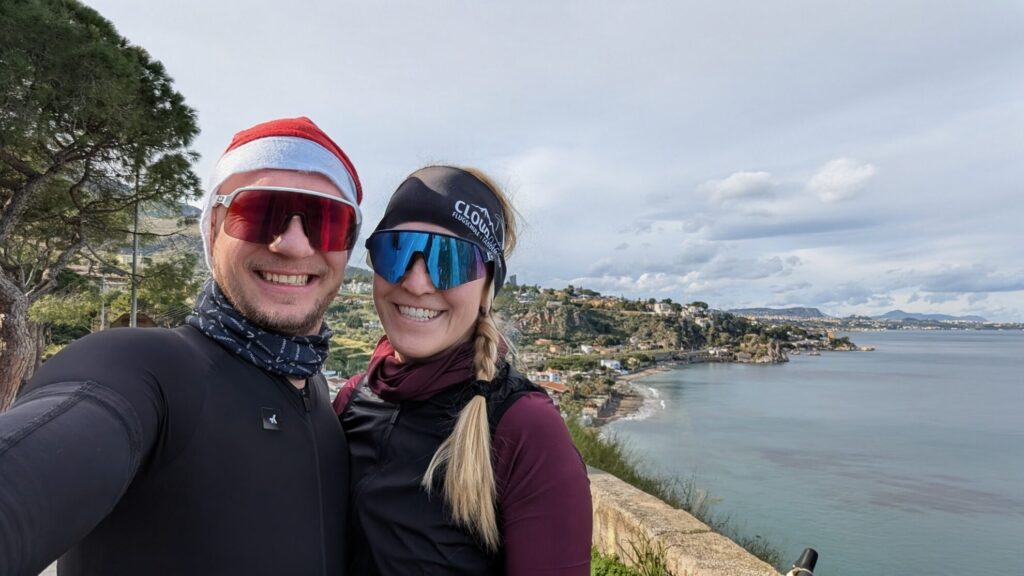 Auch der Plan für den 24. Dezember weicht deutlich von unseren üblichen Tätigkeiten ab. Im nächsten Dorf besorgen wir uns noch etwas frisches Brot und eine Flasche Wein, dann machen wir uns zu einer kleinen Fahrrad Ausfahrt auf. Mangels Kreativität in der Routenplanung geht es einfach östlich an der Küste entlang, aber scheinbar braucht es hier keine ausgetüftelte Planung. Die Strecke bietet ein fantastisches Panorama, nur leichte Steigungen und durchaus freundliche Auto und Radfahrer:innen auf der Strecke. „Buon Natale!“